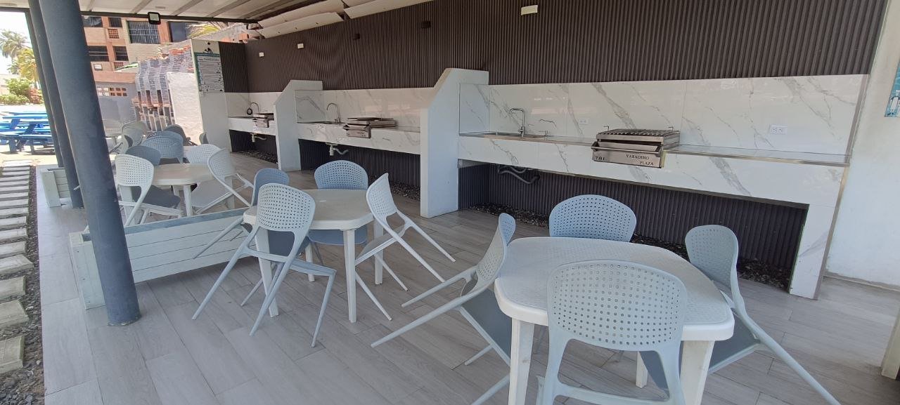 Un conjunto residencial con amplias zonas verde ubicado en planta baja.